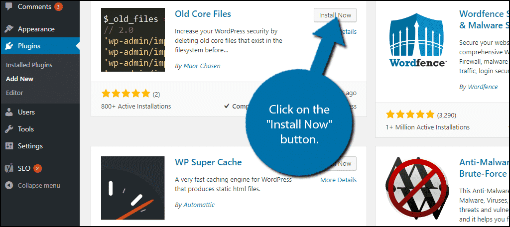 Scroll down until you find the Old Core Files plugin and click on the “Install Now” button and activate the plugin for use.